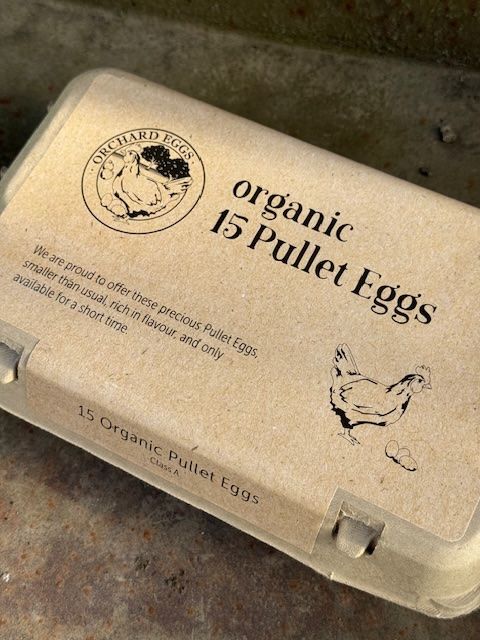 Box of 15 Organic Pullet Eggs from Orchard Eggs.
