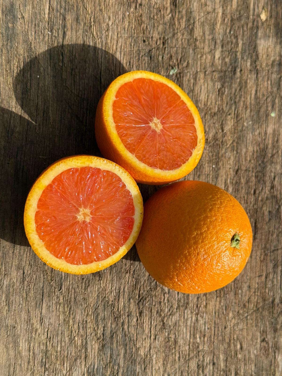 Organic ruby Valencia oranges are distinguished by their signature blush colouring, they are a low-acid citrus variety. They have a beautiful tangy flavour, perfect for juicing or eating. Wonderful also in a salad or as a snack!