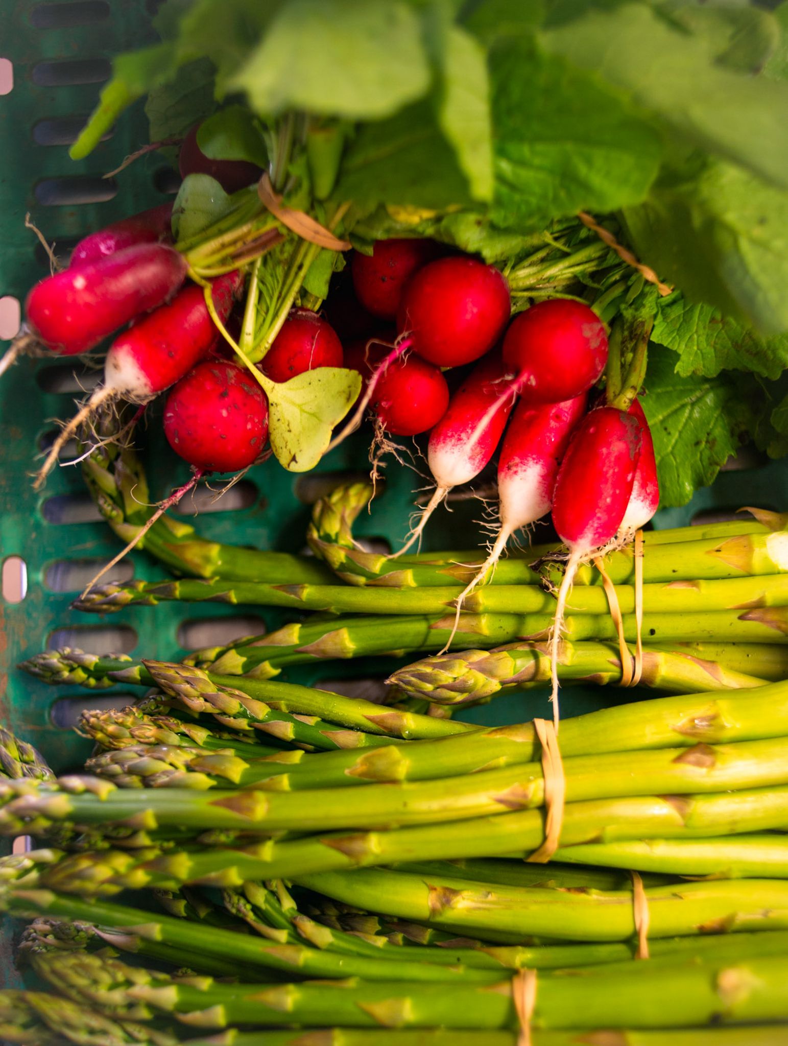 When radishes arrive it’s an exciting time, a signal that more summery times are on the way. Not that we don’t love Spring, of course, but the hungry gap can be a tricky time for growers and radishes are a quick crop that adds a little brightness and zap to our plates. No need to cook them, throw the leaves in a salad and crunch on those peppery blighters. All you really need is a sprinkle of flakey sea salt and you’re away!