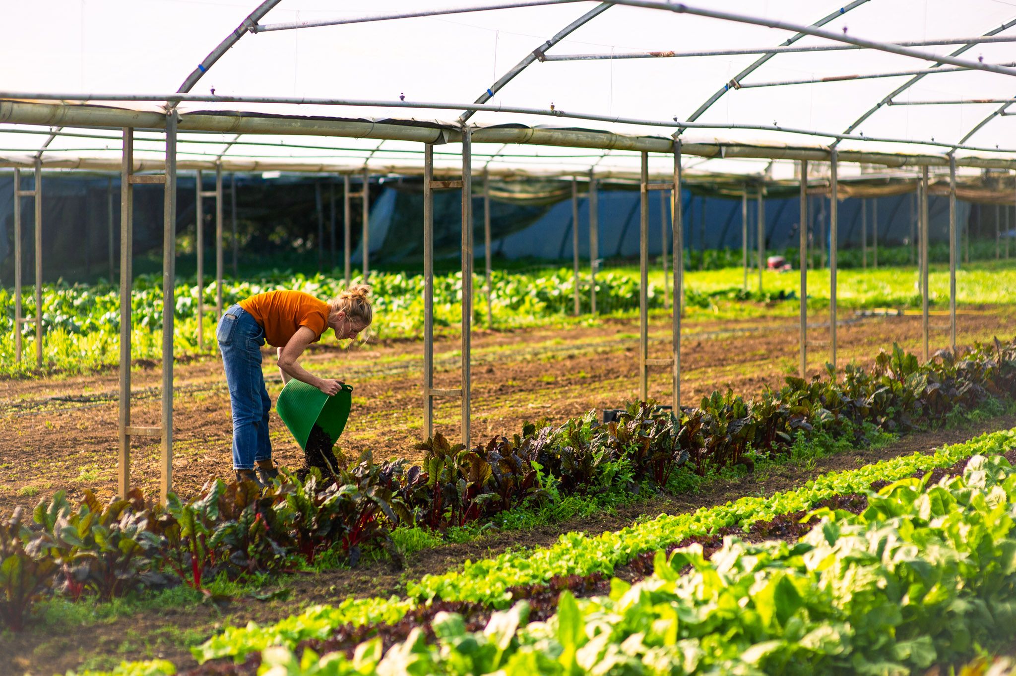 The farm is exploding with new growth and we’re busy keeping up with it! The radishes and salad turnips have arrived and new lettuces are ready for harvest too. The peas are looking tasty and we’ve had to net them to stop pheasants from nibbling away! We planted our first bed of beans in the poly tunnels and the drilled carrots are throwing up their fluffy fronds to wave at us. After the cold and wet the lighter, warmer days can’t help but make us smile as the farm is bursting with new growth! As always though, we’ve an eye on the skies and we’re hoping now for a few April showers. As we harvest the last of our overwintered crops this month, we’ve watched the soil move from waterlogged, to dry and now as hard as concrete and we can’t currently carry out any of our primary cultivations. We practice minimal tillage over all our land, just shallow cultivations to incorporate previous crops, weeds and green manures and then light applications of our own compost. Alongside green manures, it’s all we need and we don’t buy any fertility in so it’s a closed loop system. As we see fertiliser prices rising, growing organically shows how efficient and resilient it is in the face of global instability.