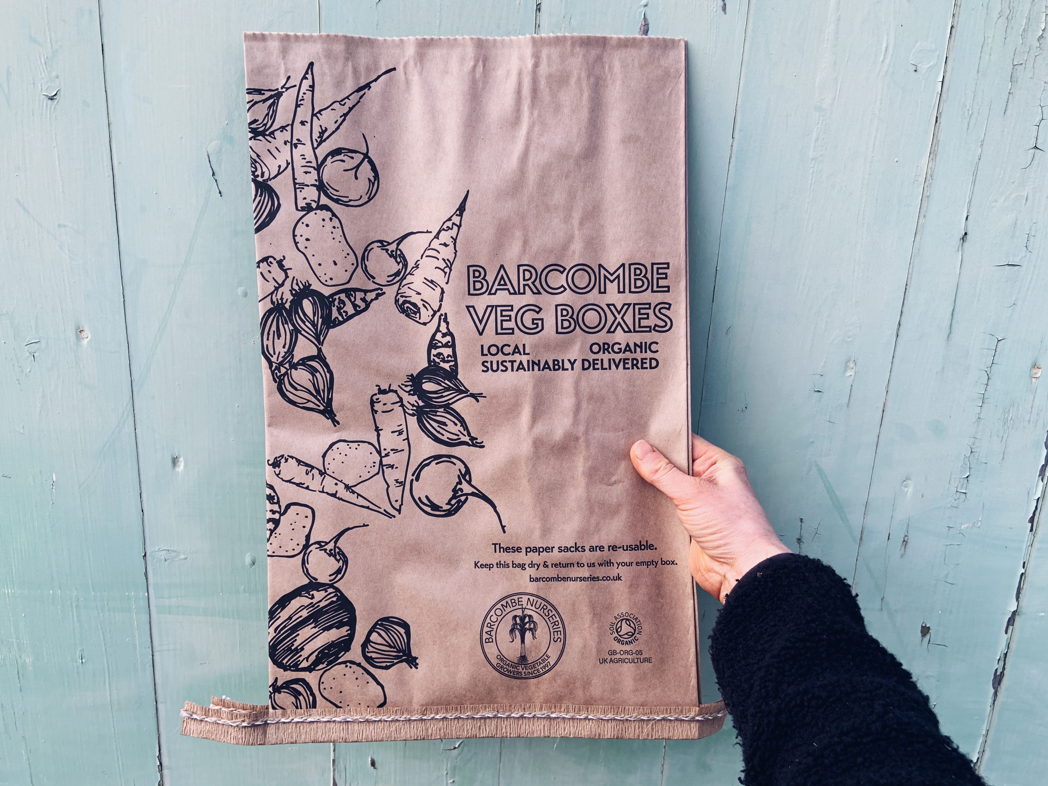 Your root vegetables will come inside paper sacks to stop them escaping or making other items muddy. Like the boxes, these sacks are used multiple times before being composted, so please leave them in your boxes for collection.